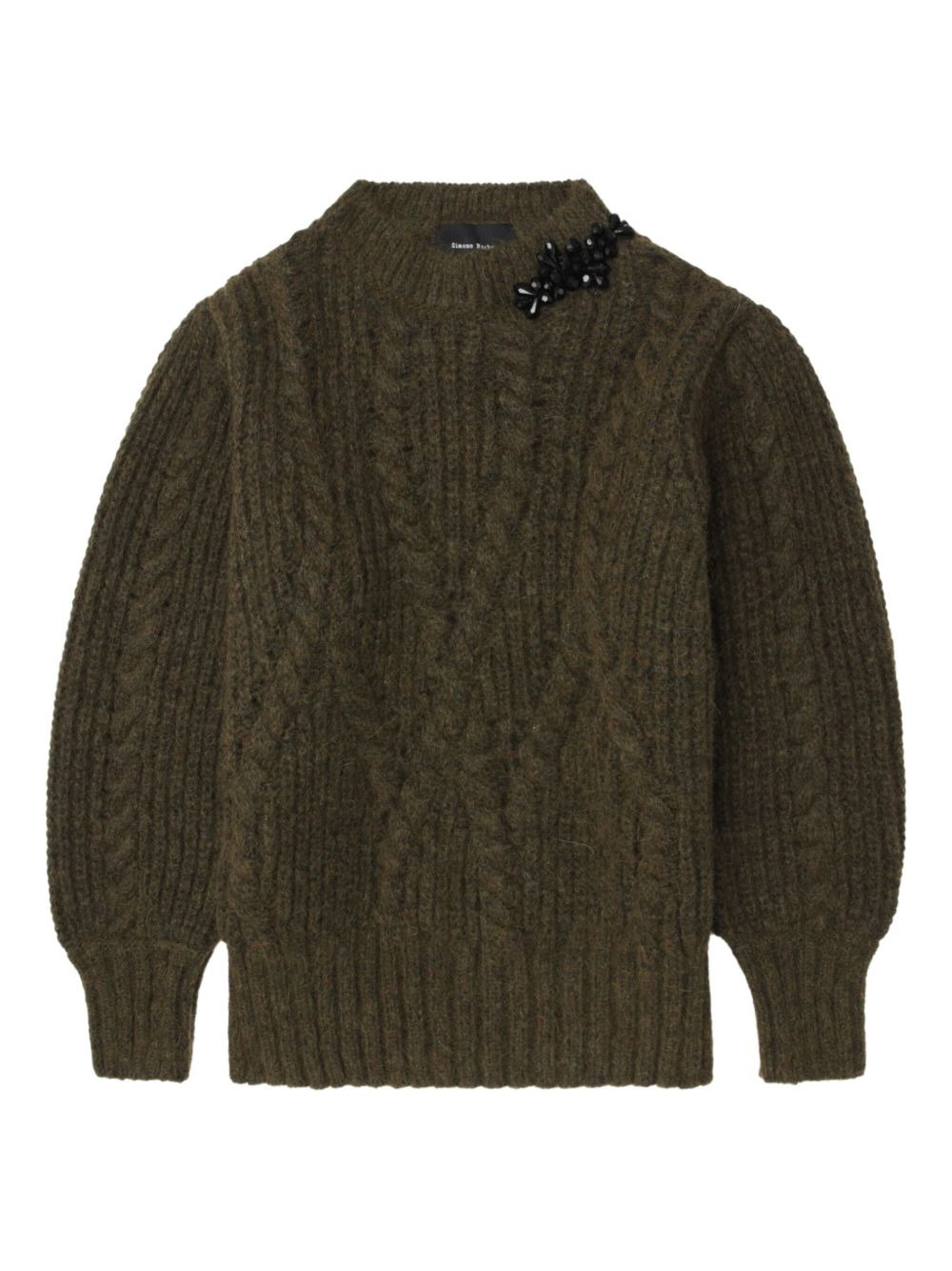 embellished cable-knit sweater Highlights - Olive green - Cable knit - Embellished shoulder - Balloon sleeves - Alpaca wool-blend - Open knit sections Imported Composition Alpaca 77%, Metallised Fibres 23% Washing instructions Read Manufacturer Guidelines