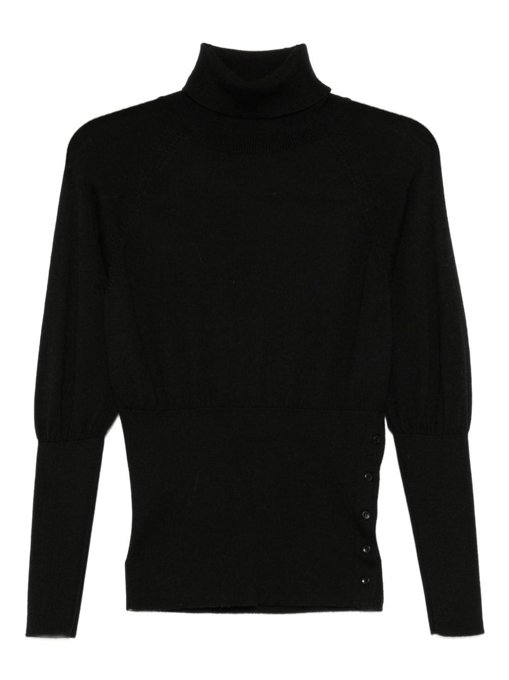 fitted high-neck top Highlights - Black - Long sleeves - Ribbed cuffs Imported Composition Merino 75%, Silk 25% SIZE & FIT Model measurements Height 5 ft 10 in(1.77 m) Bust/Chest 30.31 in(77 cm) Hips 36.22 in(92 cm) Waist 24.8 in(63 cm) FittingInformation Designed for a slim fit that sits just away from the body offering a close yet comfortable fit Made with a lightweight knit, this piece offers some stretch Washing instructions Hand Wash