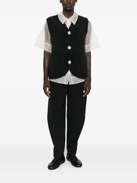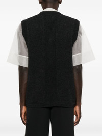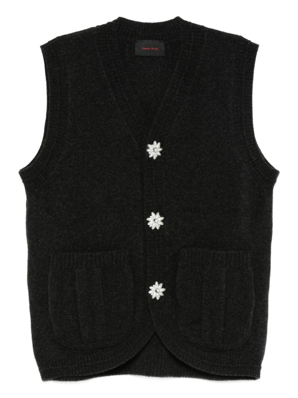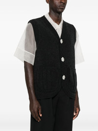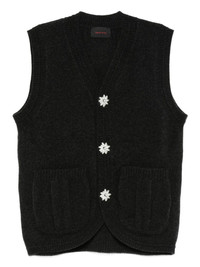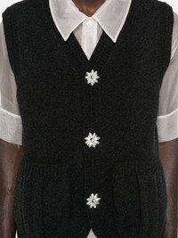 floral-button vest Highlights - Charcoal grey - Floral motif buttons - Side patch pockets - V-neck - Sleeveless - Knitted construction Imported Composition Merino 93%, Polyamide 6%, Elastane 1% SIZE & FIT Model measurements Height 6 ft 2 in(1.87 m) Bust/Chest 36.41 in(92.5 cm) Hips 37 in(94 cm) Waist 29.52 in(75 cm) Washing instructions Hand Wash