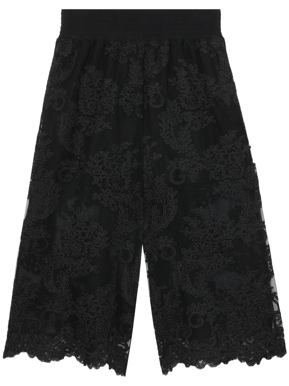 floral-lace shorts Simone Rocha's playful nature shines through with these black shorts. They're crafted from intricately embroidered floral lace to a relaxed silhouette with an elasticated waistband and scalloped trims. Highlights - Black - Lace detailing - Elasticated waistband - Wide leg - Scallop edge Imported Composition Nylon 100% Washing instructions Read Manufacturer Guidelines