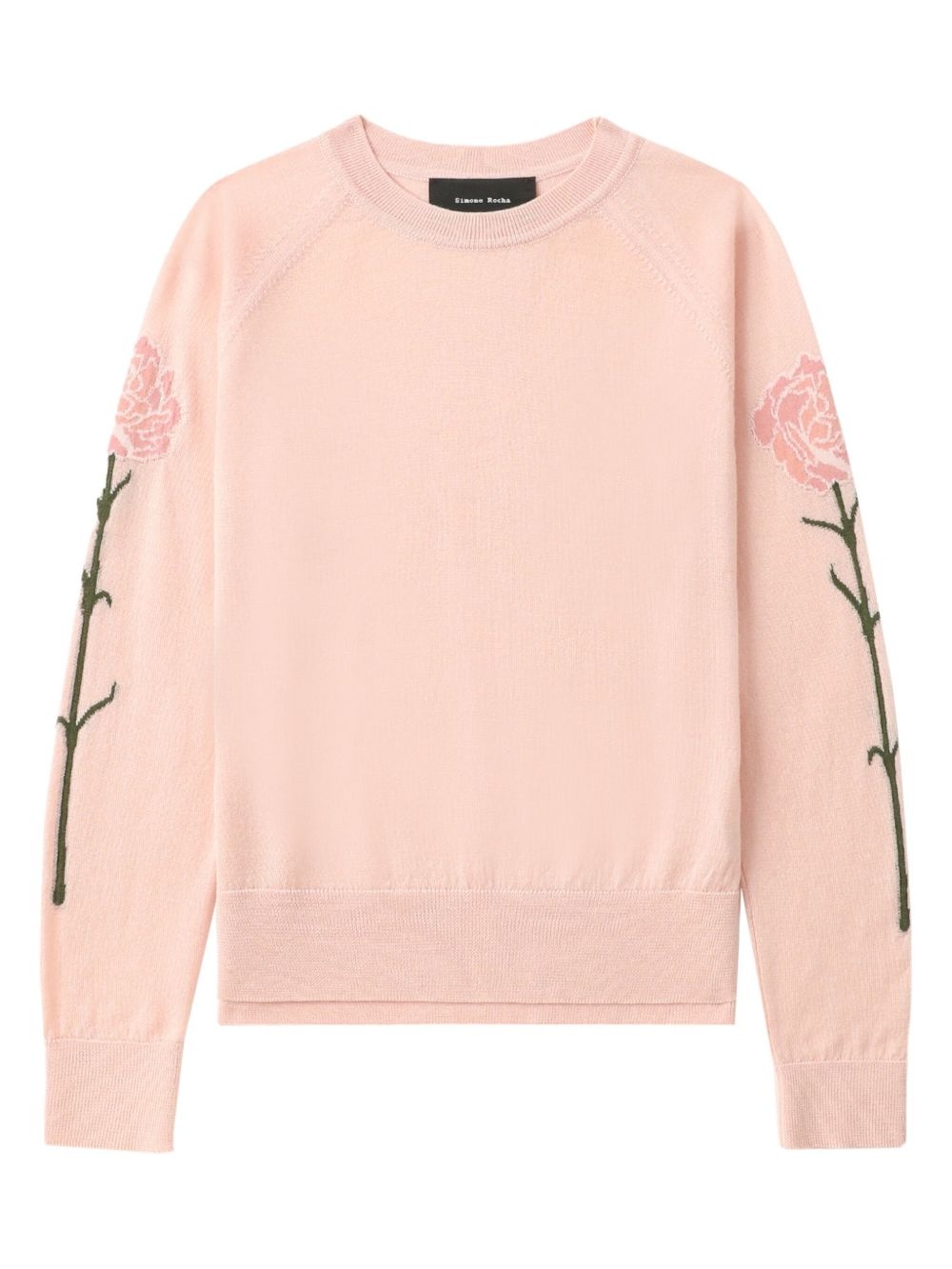 floral-motif sweater Highlights - Pink - Crew neck - Long sleeves - Ribbed cuffs and hem - Straight hem Imported Composition Cotton 100%, Merino 75%, Silk 25% Washing instructions Dry Clean Only