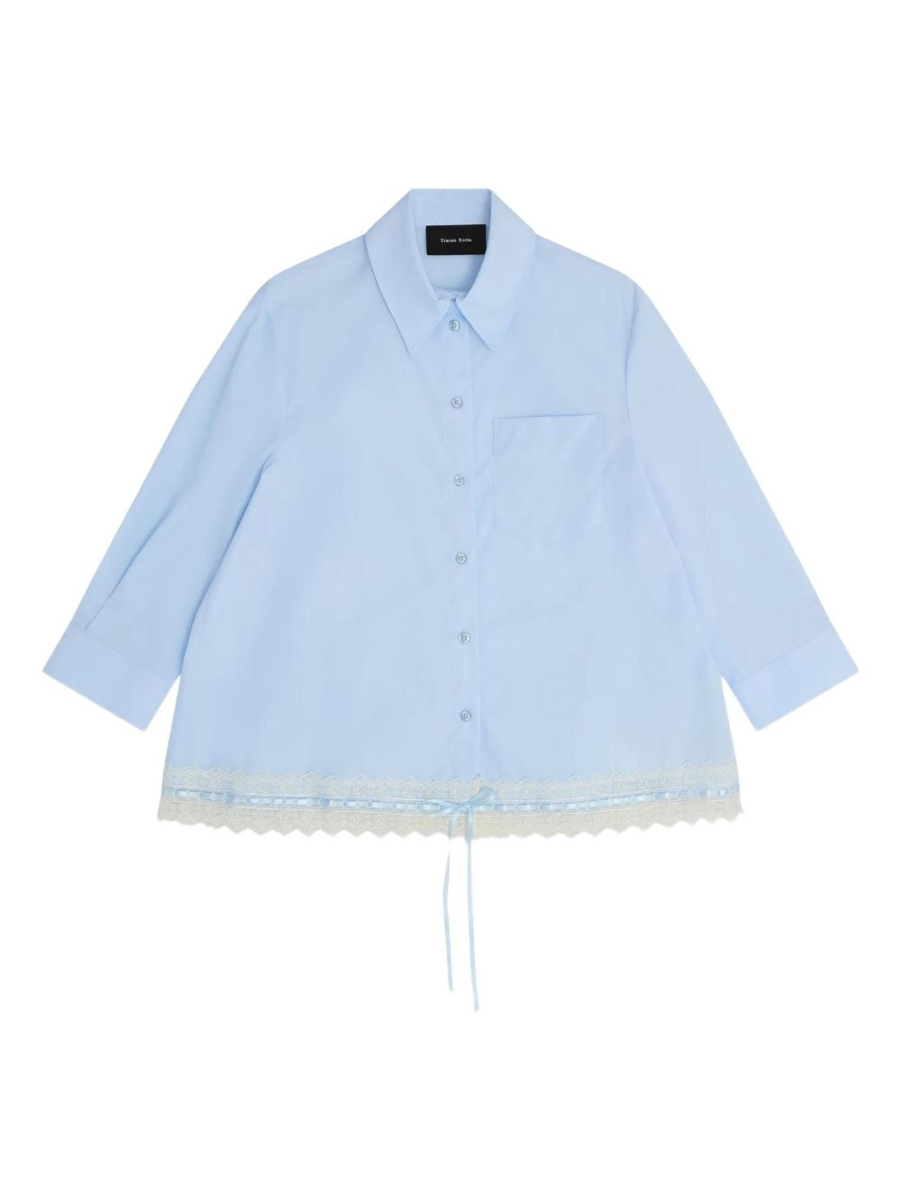 lace-trim shirt Highlights - Light blue - Chest pocket - Button fastening - Long sleeves - Lace trim - Drawstring detail Imported Composition Ramie 56%, Cotton 44% Washing instructions Read Manufacturer Guidelines