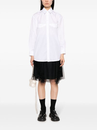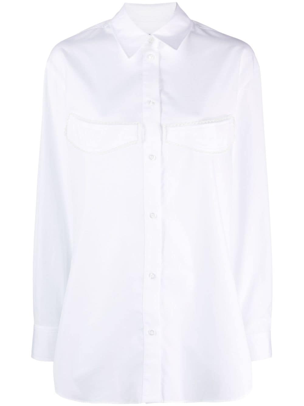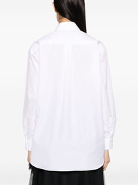long-sleeve cotton shirt Simone Rocha adds a touch of its romantic style to this classic cotton shirt with scallop-trimmed detailing at the chest. Highlights - White - Cotton - Classic collar - Applique detail - Front button fastening - Long sleeves - Buttoned cuffs - Straight hem Imported Composition Cotton 100%, Polyamide 100%, Viscose 100% SIZE & FIT Model measurements Height 5 ft 10 in(1.78 m) Bust/Chest 30.7 in(78 cm) Hips 36.22 in(92 cm) Waist 25.59 in(65 cm) FittingInformation Designed for an oversized fit, offering additional room throughout Made from a midweight non-stretch fabric This piece fits true to size – take your usual size Washing instructions Machine Wash