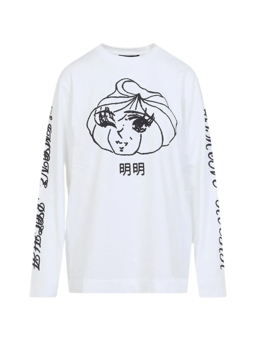 White Dim Sum Logo Print Long Sleeve T-shirt