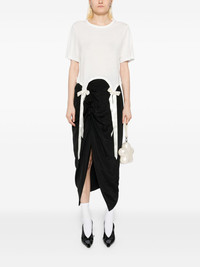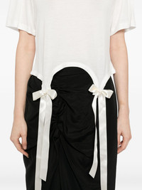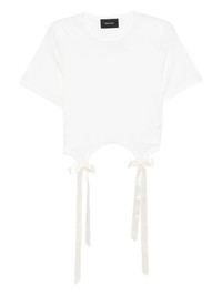 lyocell T-shirt Highlights - Ivory - Bow detailing - Crew neck - Short sleeves Imported Composition Lyocell 100% SIZE & FIT Model measurements Height 5 ft 9 in(1.76 m) Bust/Chest 31.1 in(79 cm) Hips 35.03 in(89 cm) Waist 24.4 in(62 cm) Measurement BUST 30.7 in(78 cm) LENGTH 16.53 in(42 cm) SLEEVE LENGTH 8.26 in(21 cm) Shoulder Width 12.59 in(32 cm) FittingInformation Designed for a boxy fit, intended for a loose fit throughout Made from a midweight non-stretch fabric, this piece offers minimal elasticity when worn Washing instructions Machine Wash