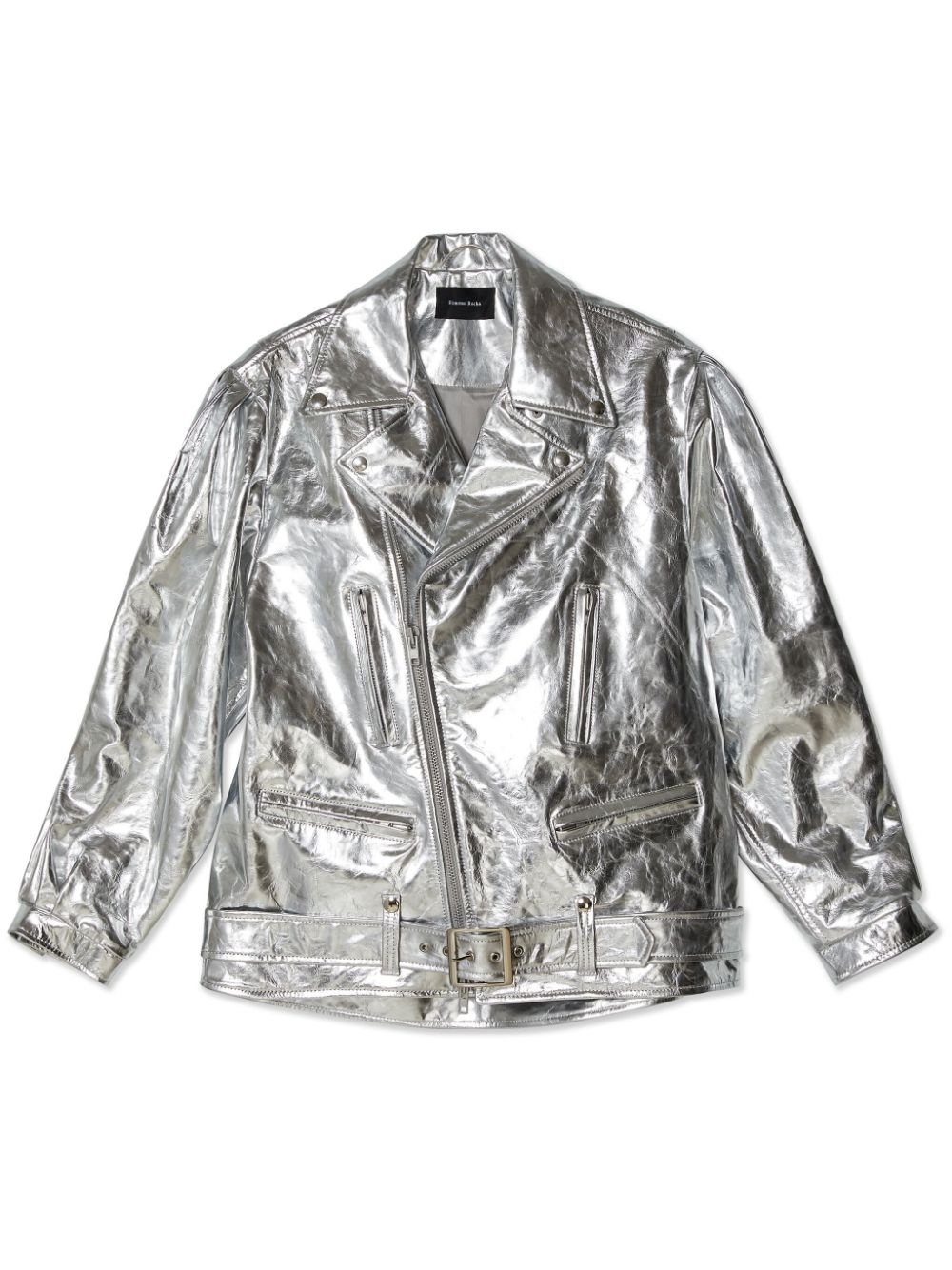 metallic leather biker jacket