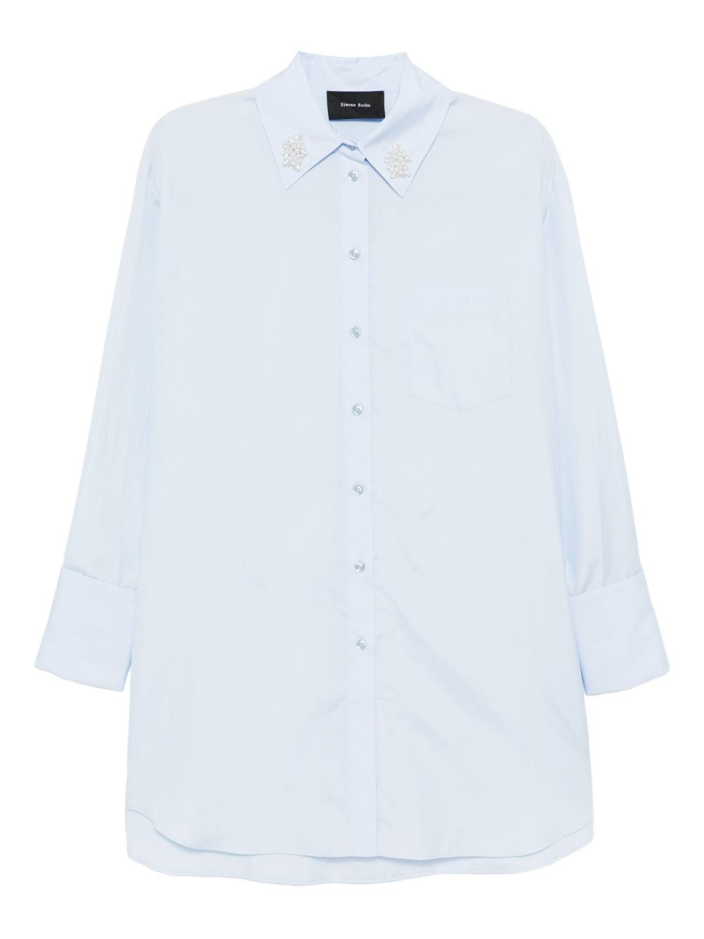 pearl-detailed shirt Highlights - Sky blue - Front and side button fastening - Front patch pocket - Long sleeves - Buttoned cuffs Imported Composition Cotton 100% SIZE & FIT Model measurements Height 5 ft 9 in(1.76 m) Bust/Chest 31.1 in(79 cm) Hips 35.03 in(89 cm) Waist 24.4 in(62 cm) FittingInformation Designed for an oversized fit, offering additional room throughout Made from a midweight non-stretch fabric Washing instructions Hand Wash