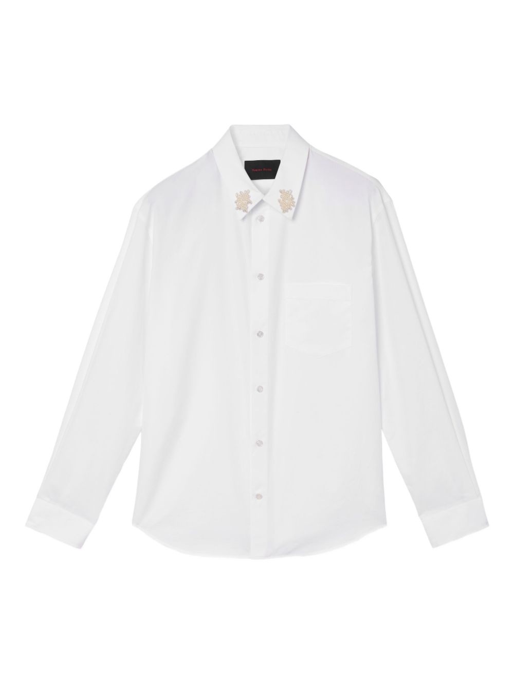 pearl-embellished shirt Highlights - White - Pearl embellishments - Long sleeves - Button fastening - Classic collar Imported Composition Cotton 100% Washing instructions Read Manufacturer Guidelines