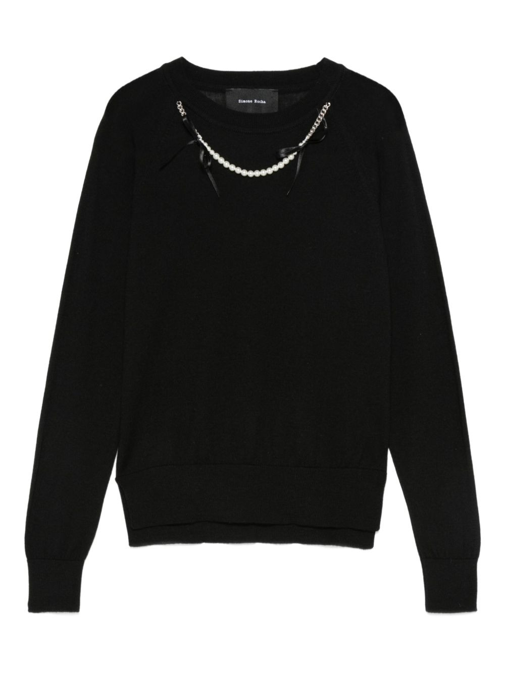 pearl-embellished sweater Highlights - Black - Pearl embellishment - Crew neck - Long sleeves Imported Composition Merino 75%, Silk 25% SIZE & FIT Model measurements Height 5 ft 9 in(1.75 m) Bust/Chest 32.67 in(83 cm) Hips 36.22 in(92 cm) Waist 24.8 in(63 cm)