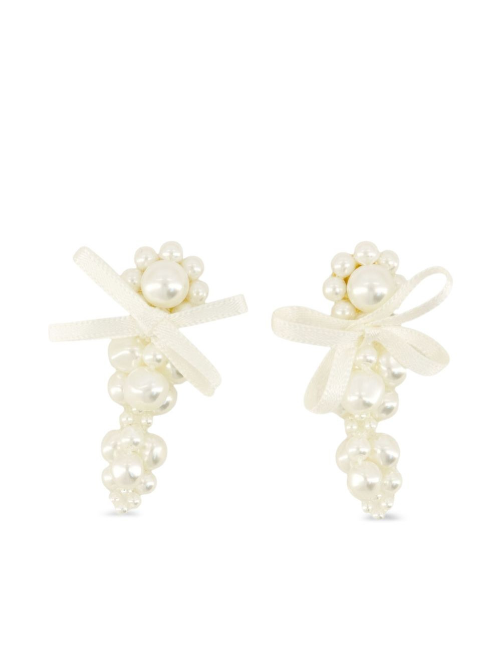 Petite bow earrings Highlights - Off-white - Faux-pearl embellishment - Ribbon bow - Cluster design - Drop design - These earrings come as a pair. Imported