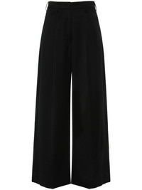 pleated wide-leg trousers Highlights - Black - Interlock weave - Belt loops - Two side inset pockets - Pleat detailing - Pressed crease - Two rear button-fastening jetted pockets - Wide leg - Concealed front button, hook and zip fastening Imported Composition Lining: Acetate 60%, Cupro 40% Outer: Polyester 55%, Virgin Wool 45% SIZE & FIT Model measurements Height 5 ft 10 in(1.77 m) Bust/Chest 33.85 in(86 cm) Hips 37 in(94 cm) Waist 26.37 in(67 cm) FittingInformation Designed with a wide-leg cut, these trousers allow for a close fit at the waist and offer a loose and roomy fit over the leg Made from a midweight non-stretch fabric This piece fits true to size – take your usual size