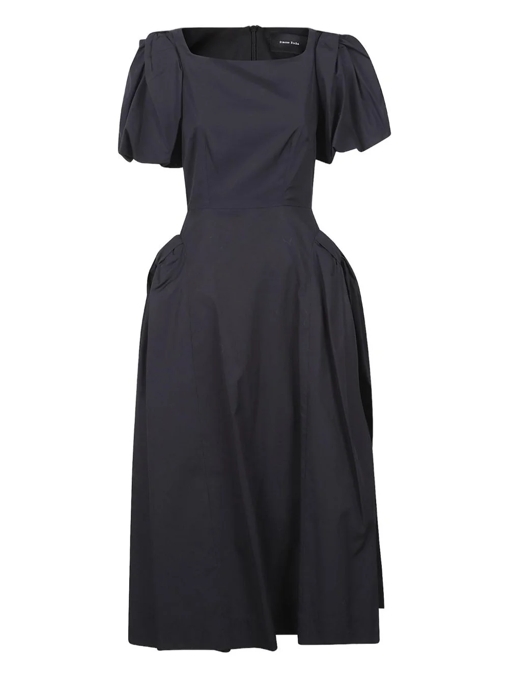 puff-sleeve midi dress Highlights - Black - Puff sleeves - Hip tutu detail - Square neck - Rear zip fastening Imported Composition Outer: Cotton 100% Lining: Cotton 100% Washing instructions Read Manufacturer Guidelines