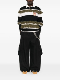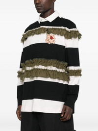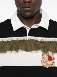 ruffle-detail polo shirt Highlights - Black and white - Horizontal stripes - Olive green ruffles - Rose embellishment - Polo collar Imported Composition Polyamide 100%, Cotton 100% SIZE & FIT Model measurements Height 6 ft 0 in(1.84 m) Bust/Chest 37.79 in(96 cm) Hips 37 in(94 cm) Waist 31.49 in(80 cm) Washing instructions Dry Clean Only