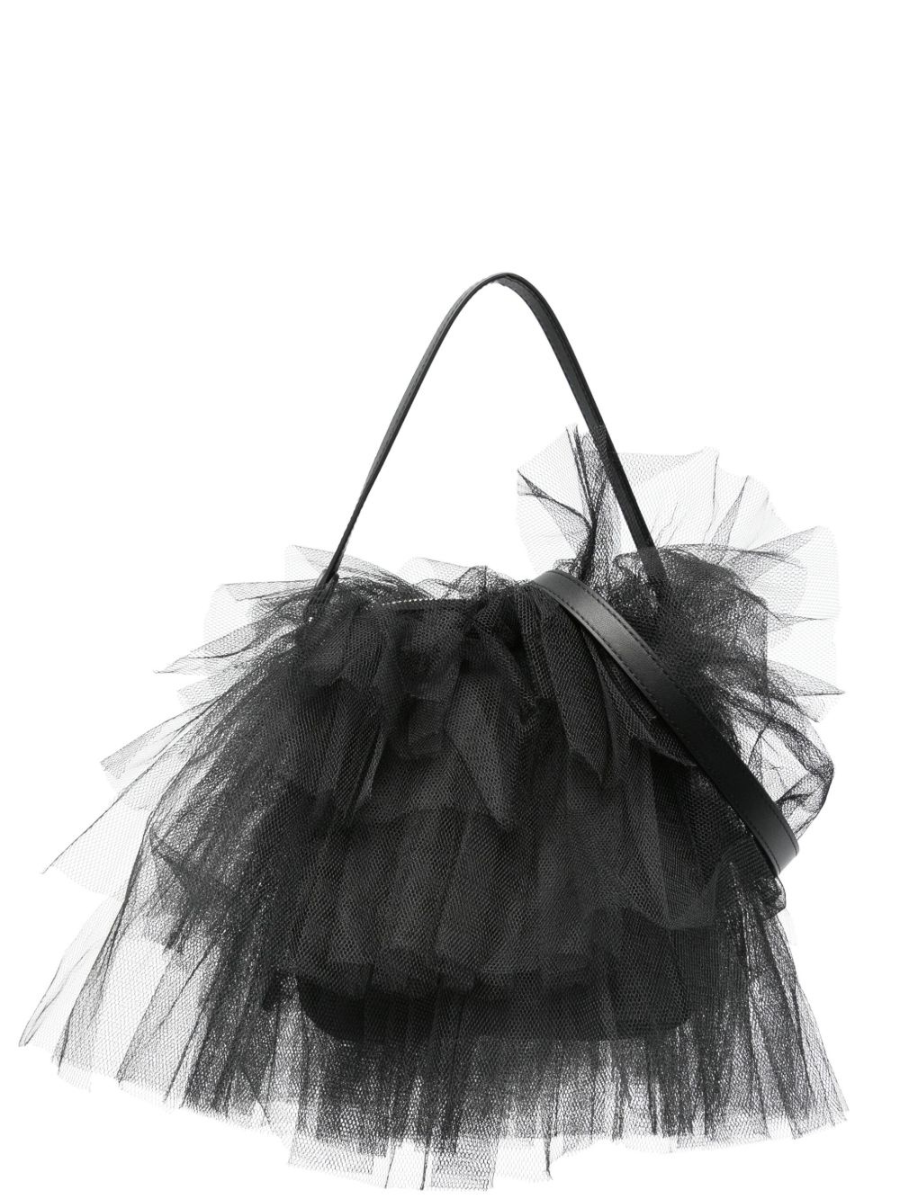 ruffled mini bag Highlights - Black - Top zip fastening - Single top handle - Detachable shoulder strap - This piece comes complete with a protective dust bag. Imported Composition Outer: Polyester 100% Lining: Polyester 100% SIZE & FIT Model measurements Height 5 ft 9 in(1.75 m) Bust/Chest 34.64 in(88 cm) Hips 36.61 in(93 cm) Waist 26.37 in(67 cm) Measurement DEPTH 1.96 in(5 cm) HANDLE 5.9 in(15 cm) HEIGHT 7.87 in(20 cm) WIDTH 7.87 in(20 cm)