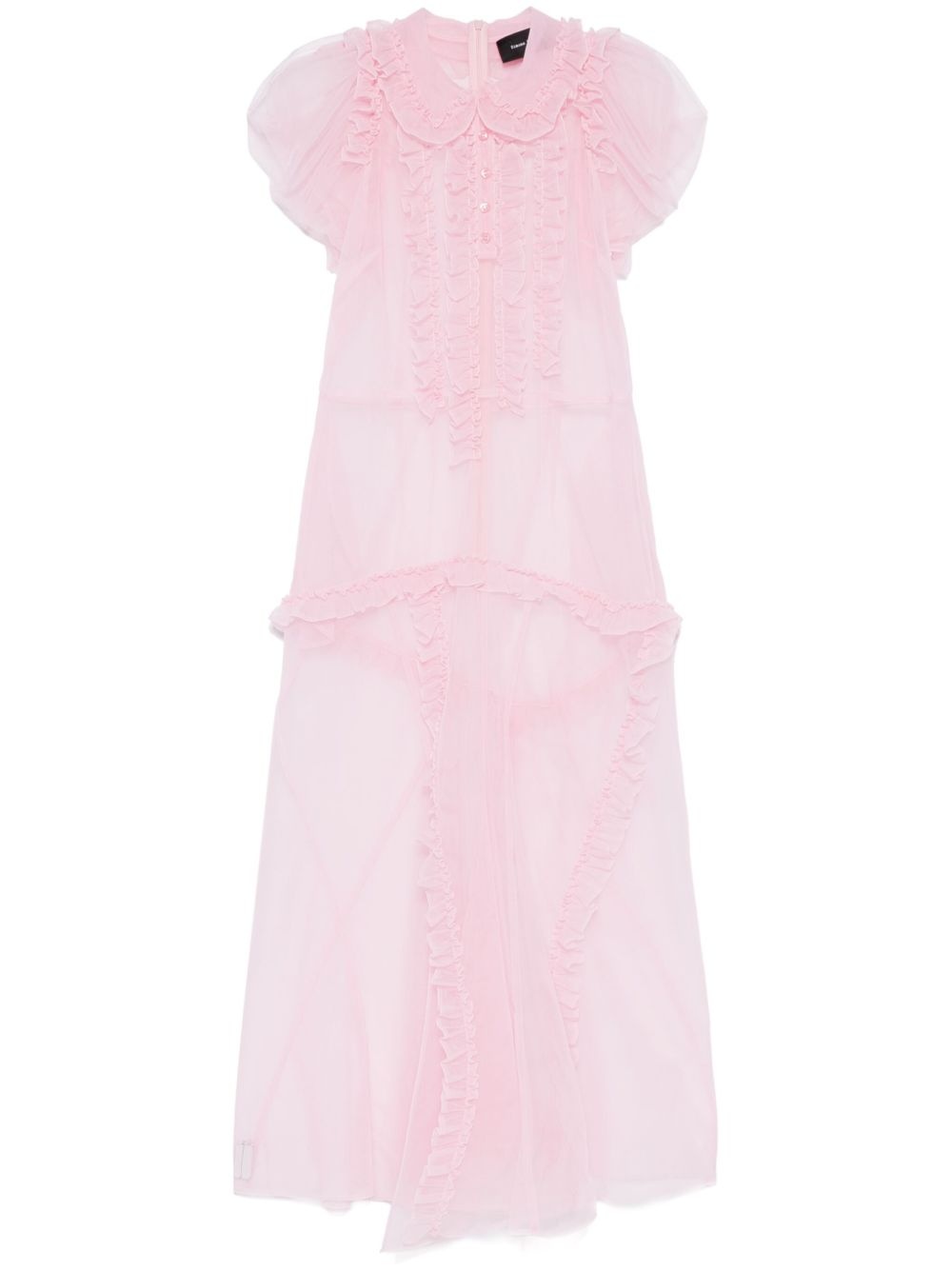 ruffled multi-seam maxi dress Highlights - Rose pink - Concealed rear zip fastening - Front button placket - Front slit - Tulle netting Imported Composition Polyamide 100% SIZE & FIT Model measurements Height 5 ft 10 in(1.78 m) Bust/Chest 31.49 in(80 cm) Hips 37 in(94 cm) Waist 23.62 in(60 cm) FittingInformation Designed for a slim fit that sits just away from the body offering a close yet comfortable fit Made from a midweight non-stretch fabric Measurement SLEEVE LENGTH 7.08 in(18 cm) HIPS 38.58 in(98 cm) LENGTH 52.75 in(134 cm) WAIST 29.92 in(76 cm)