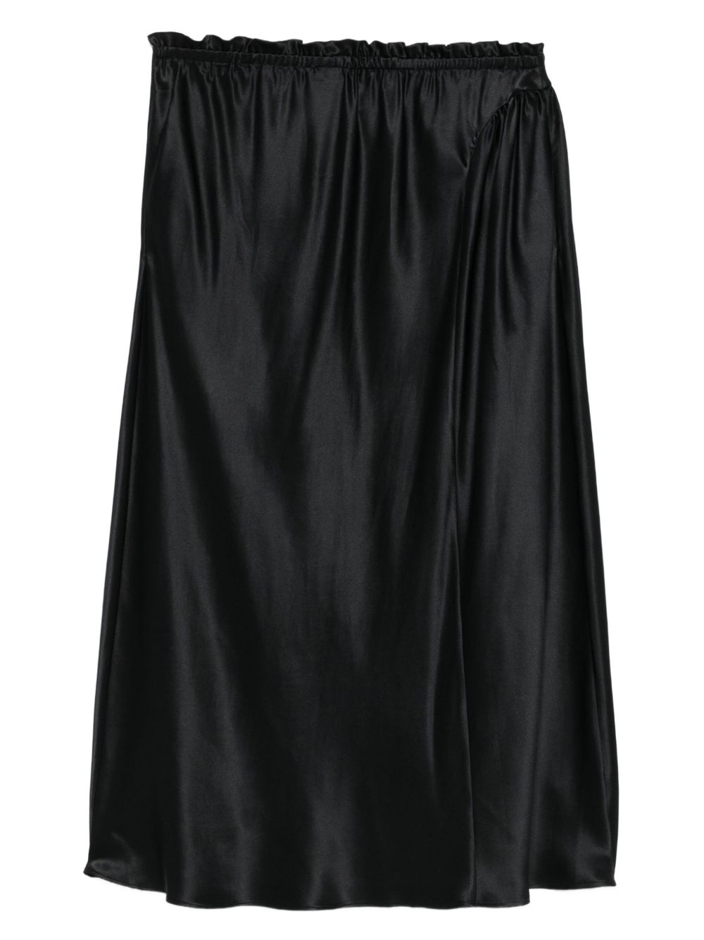 ruffled silk skirt Highlights - Black - Silk - Ruffled waistband - Elasticated waistband Imported Composition Silk 100% SIZE & FIT Model measurements Height 5 ft 10 in(1.78 m) Bust/Chest 33.85 in(86 cm) Hips 36.61 in(93 cm) Waist 26.77 in(68 cm) Washing instructions Dry Clean Only