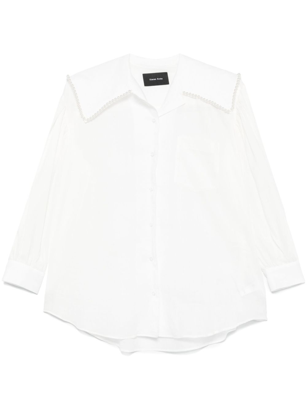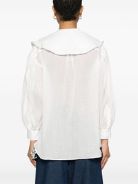 sailor-collar puff-sleeves shirt Highlights - White - Front button fastening - Chest patch pocket - Box-pleat detail - Buttoned cuffs Imported Composition Ramie 56%, Cotton 44% SIZE & FIT Model measurements Height 5 ft 10 in(1.78 m) Bust/Chest 32.67 in(83 cm) Hips 35.43 in(90 cm) Waist 23.22 in(59 cm) FittingInformation Designed to be unstructured, offering a loose fit throughout Made from a lightweight non-stretch fabric Washing instructions Hand Wash