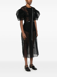 semi-sheer dress Highlights - Black - Petal sleeves - Zip front - Multiple zip pockets Imported Composition Polyamide 100%, Nylon 100% SIZE & FIT Model measurements Height 5 ft 11 in(1.8 m) Bust/Chest 31.49 in(80 cm) Hips 36.61 in(93 cm) Waist 24.4 in(62 cm) Washing instructions Hand Wash