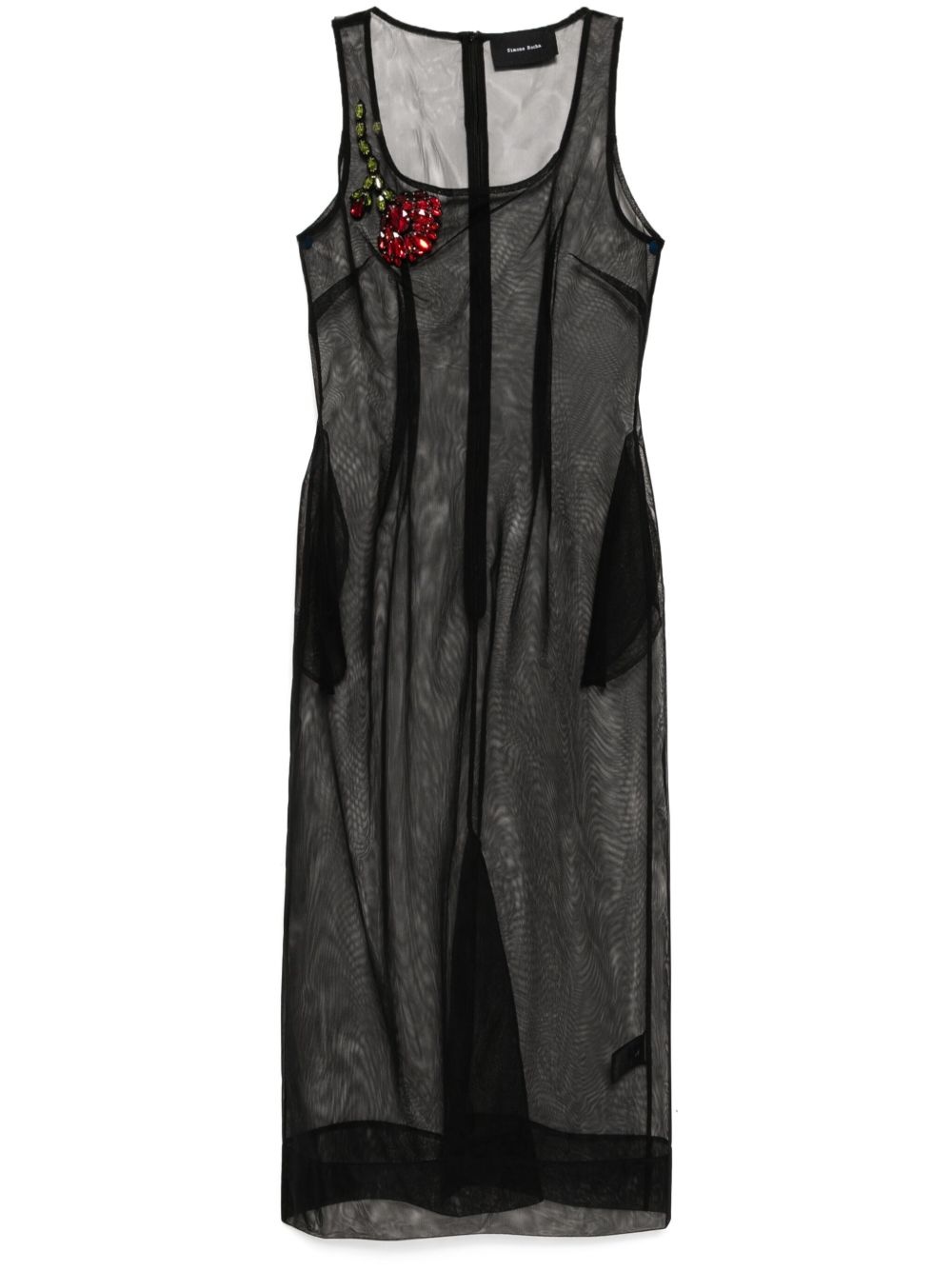 square-neck dress Highlights - Black - Rear zip fastening - Crystal embellishment - Semi-sheer construction Imported Composition Nylon 100% SIZE & FIT Model measurements Height 5 ft 10 in(1.78 m) Bust/Chest 24.4 in(62 cm) Hips 35.43 in(90 cm) Waist 31.88 in(81 cm) FittingInformation Designed for a slim fit that sits just away from the body offering a close yet comfortable fit Made from a lightweight non-stretch fabric