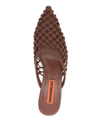 60mm Knotted Gala mules Highlights - Chocolate brown - Woven wicker design - Pointed toe - Branded leather insole - Mid heel Imported Composition Outer: Polyurethane 50%, Polyester 50% Lining: Calf Leather 100% Sole: Leather 100% SIZE & FIT Measurement HEEL 2.36 in(6 cm)
