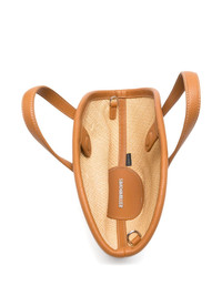 raffia leather-trimmed tote bag Highlights - Beige - Raffia weave - Leather trim - Top handles - Curved shape - Embroidered logo Imported Composition Outer: Straw 75%, Cotton 25% SIZE & FIT Model measurements Height 5 ft 10 in(1.78 m) Bust/Chest 31.49 in(80 cm) Hips 37 in(94 cm) Waist 23.62 in(60 cm) Measurement DEPTH 3.54 in(9 cm) HANDLE 2.75 in(7 cm) HEIGHT 6.49 in(16.5 cm) WIDTH 13.38 in(34 cm)