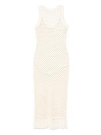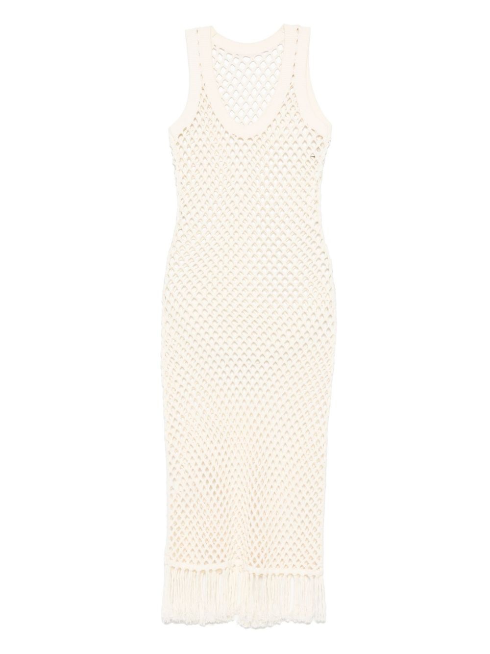 cotton dress Highlights - Cream white - Openwork areas - Fringed edge - Sleeveless Imported Composition Cotton 100% SIZE & FIT Model measurements Height 5 ft 10 in(1.79 m) Bust/Chest 33.07 in(84 cm) Hips 35.82 in(91 cm) Waist 24.01 in(61 cm) FittingInformation Designed for a close fit throughout Made with a midweight knit, this piece offers some stretch