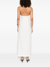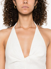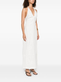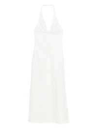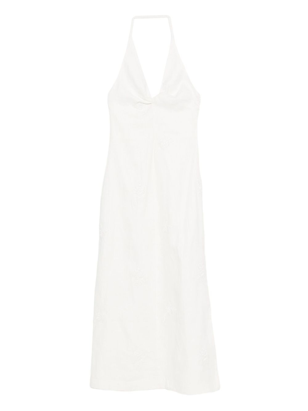 Alessandra twist-front embroidered linen halterneck midi dress White