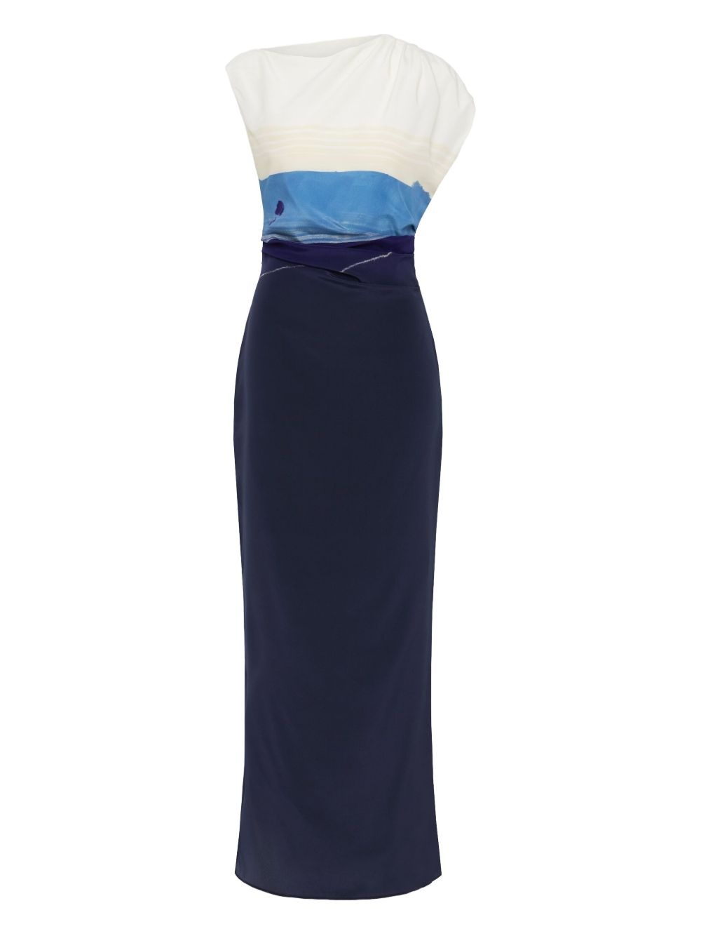 silk midi dress Highlights - Navy blue - Round neck - Asymmetric sleeves - Straight hem - Mid-length Imported Composition Silk 100% Washing instructions Dry Clean Only