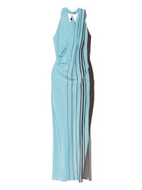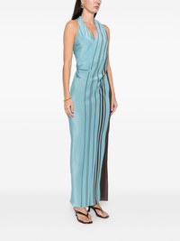 striped halterneck maxi dress Highlights - Blue - Striped pattern - Halterneck - Draped design - Sleeveless - Side slit Imported Composition Silk 100% SIZE & FIT Model measurements Height 5 ft 10 in(1.78 m) Bust/Chest 33.46 in(85 cm) Hips 36.22 in(92 cm) Waist 23.22 in(59 cm) Washing instructions Dry Clean Only