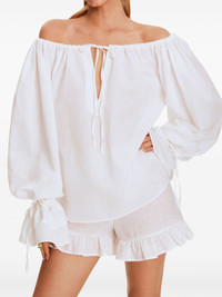 Cha Cha ruffled hem shorts set Highlights - White - Elasticated waistband - Frilled hem detailing - Headscarf Imported Composition Organic Linen 55%, Cotton 45%