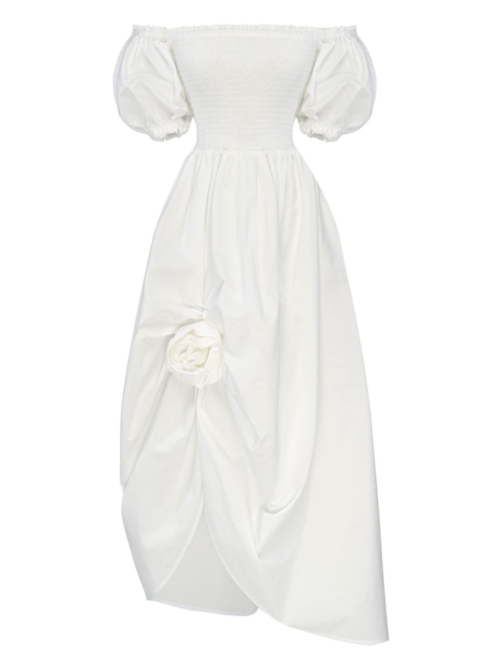 cotton midi dress Highlights - White - Faux-flower detailing - Square neck - Short sleeves - Mid-length Imported Composition Cotton 100%