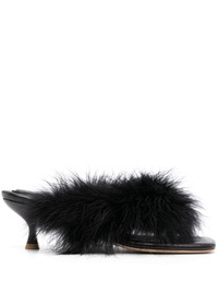 feathered slip-on sandals These sandals from SLEEPER are an elegant offering. The pair are designed for indoor and outdoor wear, and come complete with black feather-trim detailing along the vamp for an ornate finish. Imported Composition Lining: Leather 100% Outer: Turkey Feather 100%, Leather 100% Sole: Leather 100% SIZE & FIT Measurement HEEL 2.75 in(7 cm) Sole height 0.39 in(1 cm)