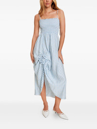 gingham-pattern midi dress Highlights - Light blue - Tie shoulder straps - Floral detailing - Ruched detail Imported Composition Linen/Flax 50%, Viscose 50%