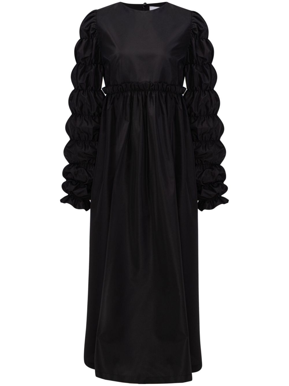 I Like It Puff panelled midi dress Highlights - Black - Taffeta - Satin finish - Empire line - Panelled design - Gathered detailing - Ruffled trim - Crew neck - Concealed rear zip fastening - Long virago sleeves - Straight hem - Mid-calf length Imported Composition Polyester 100% Washing instructions Dry Clean Only