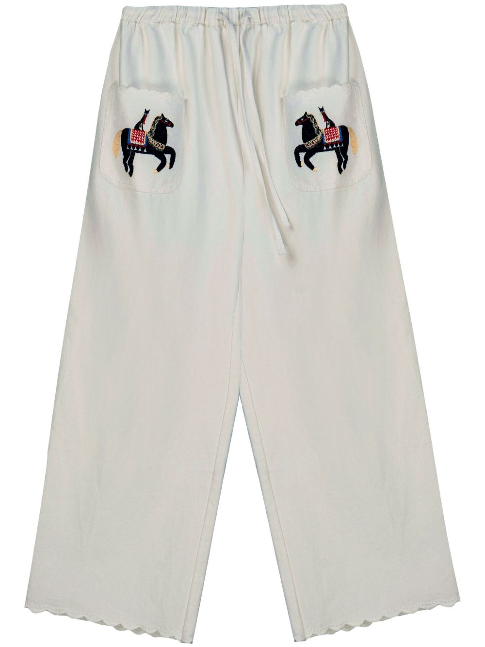 Kotyk trousers Highlights - White - Cotton - Poplin texture - Low-rise - Elasticated waistband with internal drawstring - Embroidered motif - Two front patch pockets - Embroidered motif - Two rear patch pockets - Scallop hem - Straight leg Imported Composition Viscose 100%, Cotton 100%