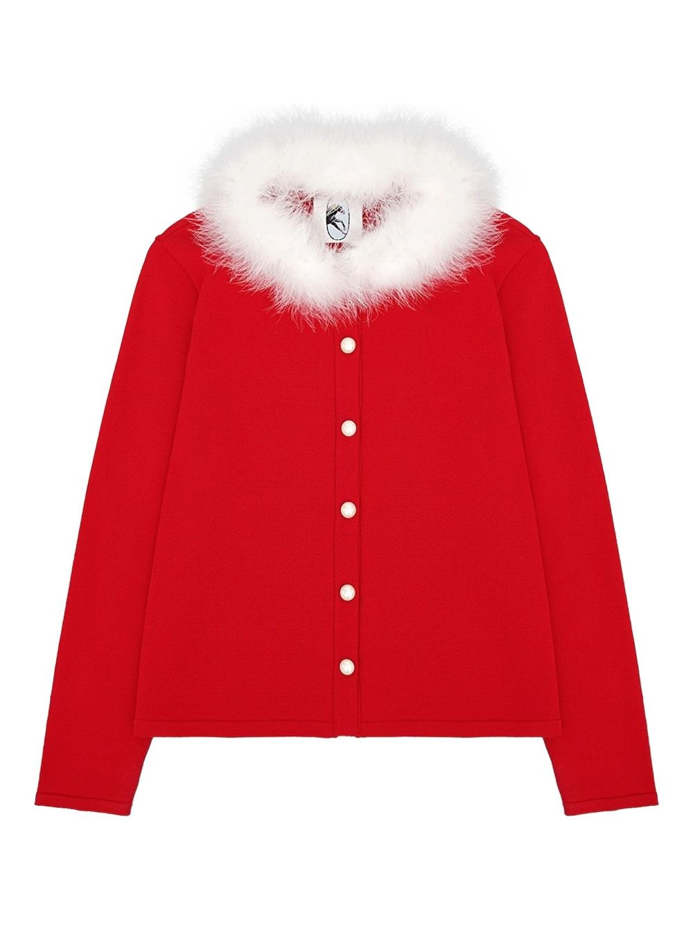 Miss Kitty cardigan Highlights - Red - Detachable feathers - Front button fastening - Long sleeves - Round neck Imported Composition Outer: Viscose 70%, Polyester 30% Turkey Feather 100% Washing instructions Read Manufacturer Guidelines