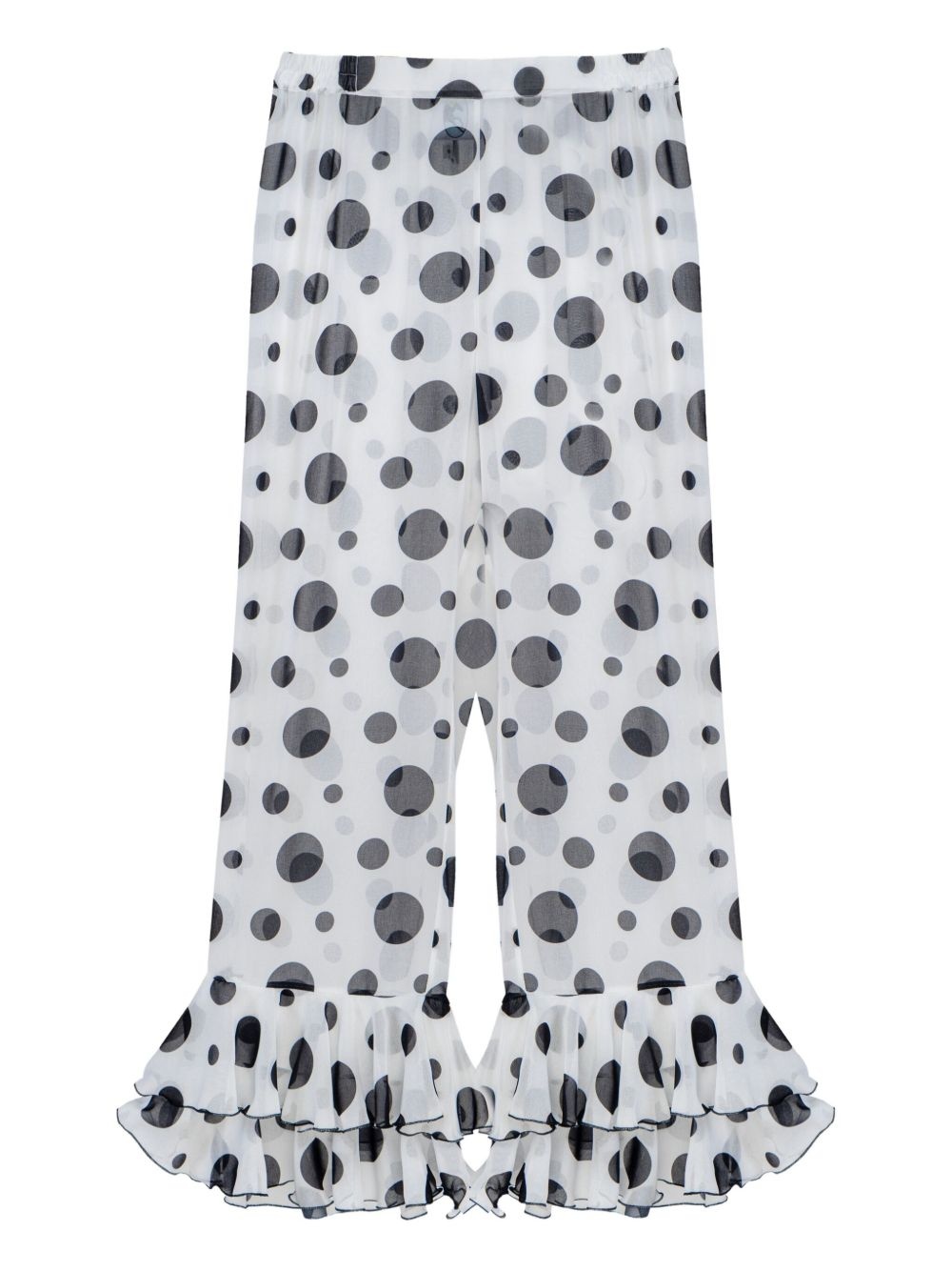 polka-dot ruffled trousers Highlights - White - Polka dots - Elasticated waistband - Ruffled hem Imported Composition Polyester 100% Washing instructions Dry Clean Only