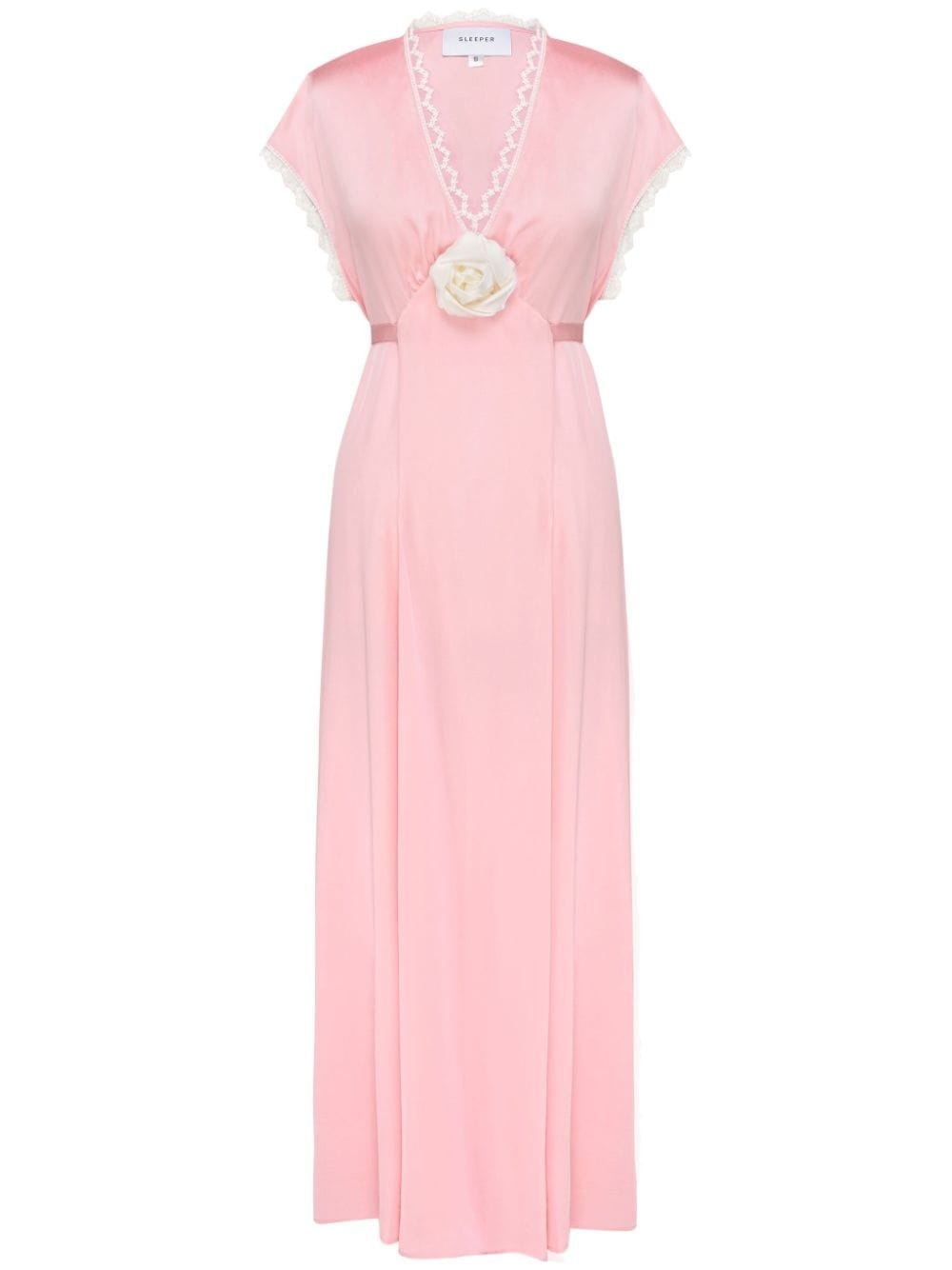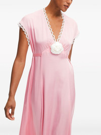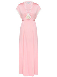 The Genus satin dress Highlights - Pink - Silk - Satin weave - Empire line - Lace trim - Floral applique - Rear tie fastening - Ankle-length - Straight hem Imported Composition Rayon 100%, Silk 100% Washing instructions Read Manufacturer Guidelines