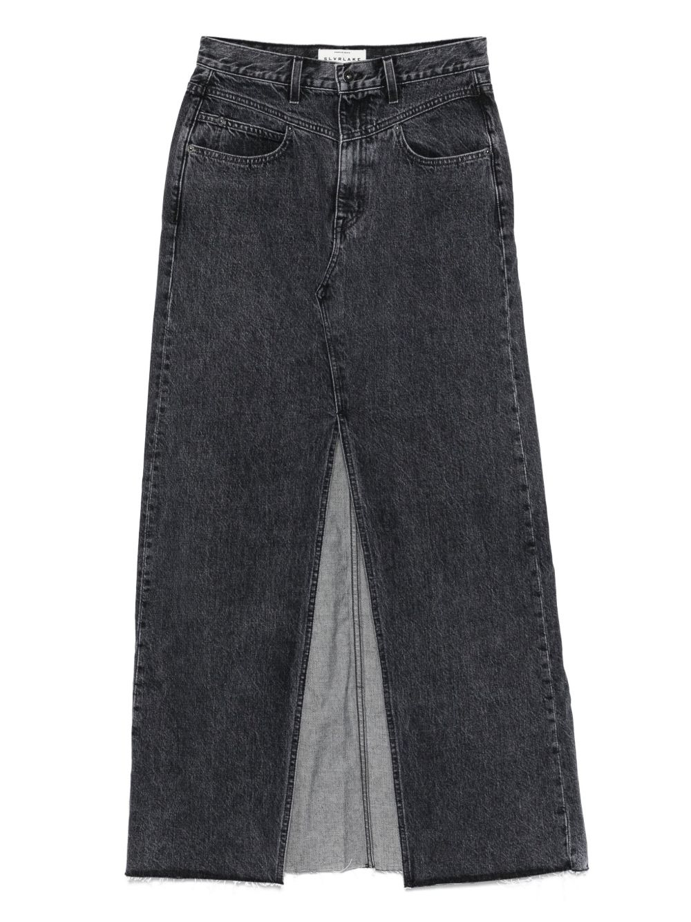 Dallas maxi skirt Highlights - Black - Double yoke - Front split - Frayed hem - Five-pocket design - Button fly Made in United States Composition Cotton 100% SIZE & FIT Model measurements Height 5 ft 9 in(1.75 m) Bust/Chest 34.64 in(88 cm) Hips 36.61 in(93 cm) Waist 26.37 in(67 cm) Washing instructions Machine Wash