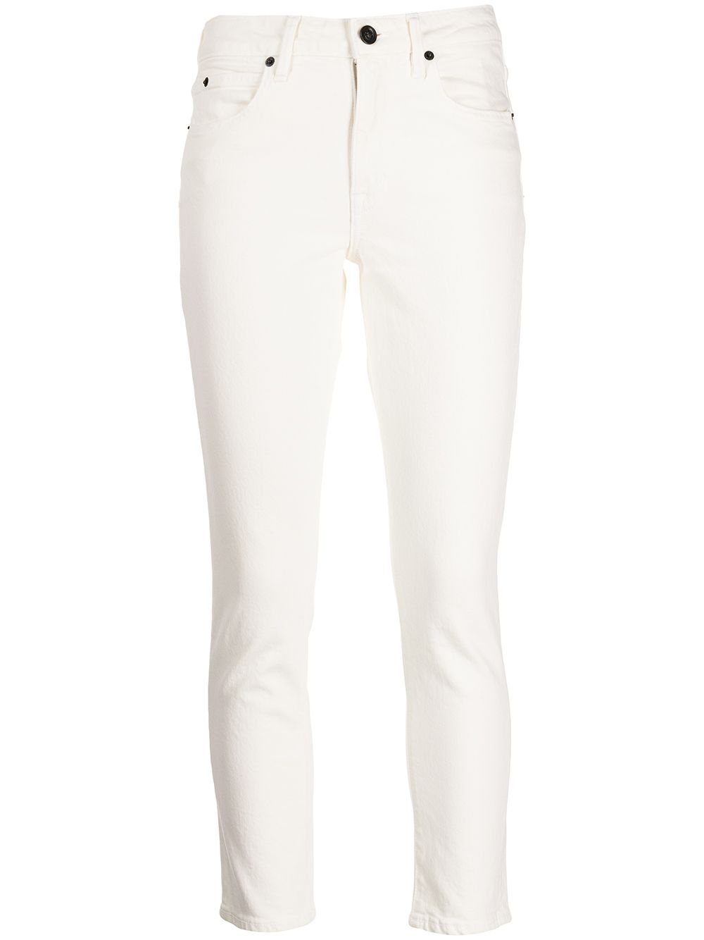 slim cropped jeans white cotton front button and zip fastening belt loops classic five pockets slim cut cropped leg Made in United States Composition Cotton 100% SIZE & FIT Model measurements Height 5 ft 10 in(1.77 m) Bust/Chest 33.85 in(86 cm) Hips 35.03 in(89 cm) Waist 24.01 in(61 cm) FittingInformation This piece fits true to size. We recommend you get your regular size Cut for a close fit Made with a mid-weight fabric