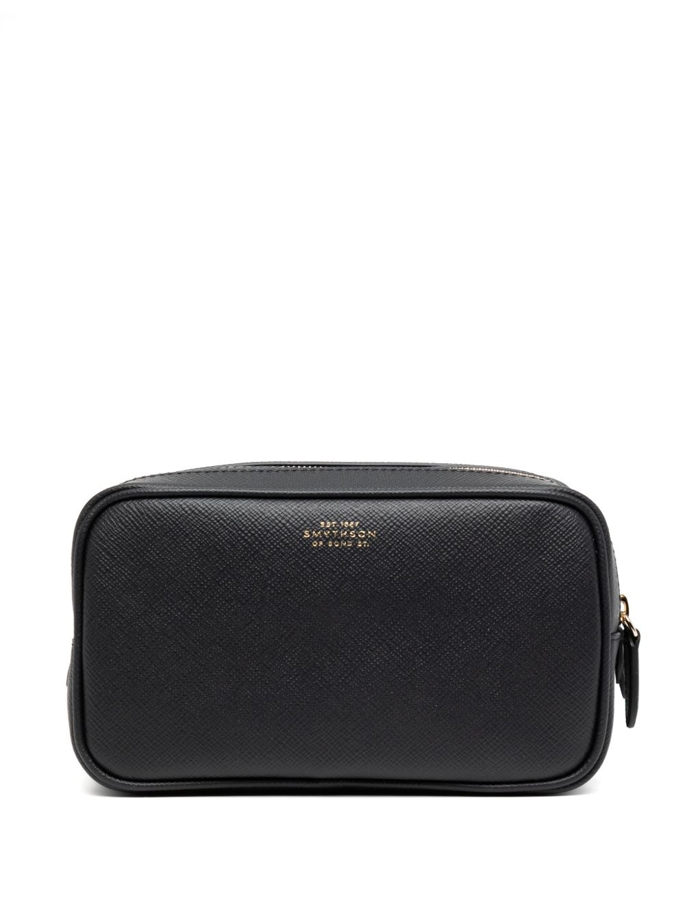 double-zip wash bag Highlights - Navy blue - Top zip fastening - Gold-tone logo lettering - Tonal stitching Made in Italy Composition Outer: Grained Calf Leather 100% SIZE & FIT Measurement DEPTH 3.74 in(9.5 cm) LENGTH 4.72 in(12 cm) WIDTH 8.26 in(21 cm)