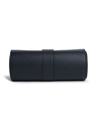 Panama leather 3-watch roll The British brand Smythson presents its 'Panama' collection, combining hardwearing cross-grain leather with a heritage-inspired design. Based on the texture of leather used in the famous Panama diary, the material reappears in the construction of this watch roll, paired with nubuck lining and a removable pad for practical storage. Highlights - Black - Calf leather - Gold-tone logo lettering - Removable pads - Foldover top with magnetic fastening - Suede lining - Holds 3 watches Made in Italy SIZE & FIT Measurement HEIGHT 3.14 in(8 cm) WIDTH 7.87 in(20 cm)