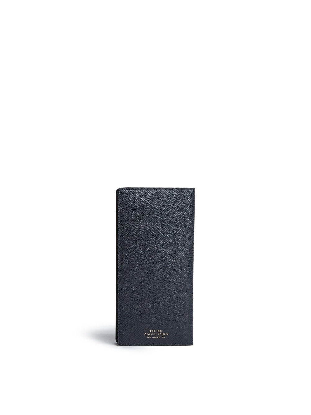 Panama slim bi-fold leather wallet Highlights - Prussian blue - Calf leather - Grained texture - Bi-fold design - Hard rectangle body - Gold-tone logo lettering - Internal card slots Made in Italy Composition Outer: Calf Leather 100% SIZE & FIT Measurement LENGTH 7.48 in(19 cm) WIDTH 3.54 in(9 cm)