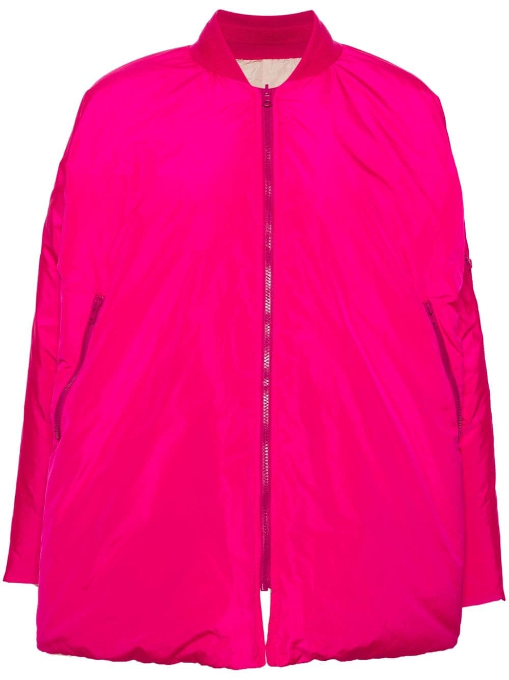 Orion reversible bomber jacket Highlights - Fuchsia pink/light beige - Feather down - Padded design - Baseball collar - Front zip fastening - Long sleeves - Front zip fastening pockets - Internal zip-fastening pockets - Drawstring hem - Reversible Made in Italy Composition Lining: Polyester 100%, Feather Down 100% Outer: Polyester 100% SIZE & FIT Model measurements Height 5 ft 10 in(1.77 m) Bust/Chest 33.07 in(84 cm) Hips 37 in(94 cm) Waist 24.8 in(63 cm) FittingInformation Designed to be unstructured, offering a loose fit throughout The adjustable drawstring means that you can adjust this piece’s fit to suit your comfort and preference Made from a padded non-stretch fabric, giving it no natural elasticity This piece fits true to size – take your usual size Washing instructions Hand Wash