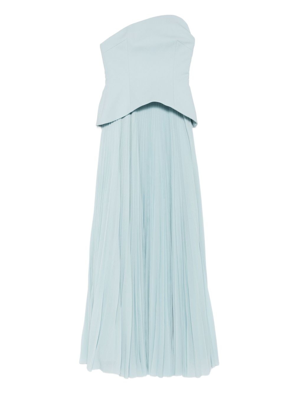 Britt strapless pleated dress Highlights - Light blue - Pleated skirt - Strapless bodice - Fitted top - Asymmetric neckline - A-line skirt Imported Composition Lining: Polyester 95%, Elastane 5% Outer: Polyester 100% SIZE & FIT Model measurements Height 5 ft 10 in(1.78 m) Bust/Chest 33.85 in(86 cm) Hips 36.61 in(93 cm) Waist 26.77 in(68 cm) FittingInformation Designed for a slim fit that sits just away from the body offering a close yet comfortable fit Made from a heavyweight fabric Washing instructions Dry Clean Only
