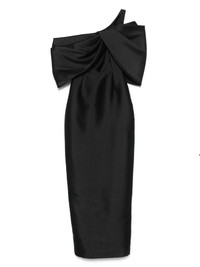 off-shoulder dress Highlights - Black - Asymmetric neck - Rear zip fastening - One-shoulder Imported Composition Outer: Polyester 100% Filling: Elastane 5% Lining: Polyester 95% SIZE & FIT Model measurements Height 5 ft 9 in(1.75 m) Bust/Chest 32.67 in(83 cm) Hips 36.22 in(92 cm) Waist 24.8 in(63 cm) FittingInformation Designed for a close fit throughout The vented hem offers movement at the rear Made from a midweight stretch fabric, this piece offers elasticity and flexibility when worn Washing instructions Dry Clean Only