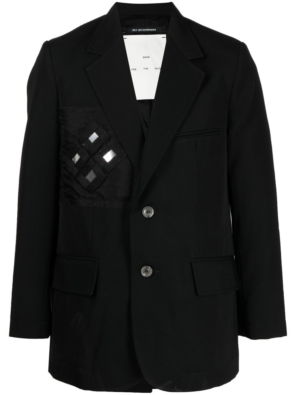 applique detail single-breasted blazer Highlights - Black - Wool/recycled cupro blend - Gabardine weave - Applique detailing - Notched collar - Slit pocket at the chest - Two side flap pockets - Front button fastening - Long sleeves Imported Composition Outer: Wool 100% Lining: Cupro 100%