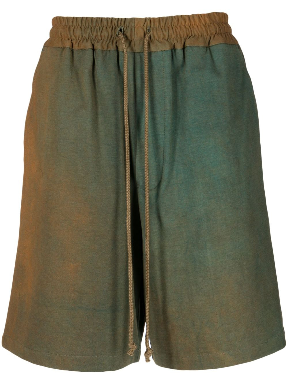 bleached-effect drawstring cotton shorts bleached-effect drawstring cotton shorts from SONG FOR THE MUTE featuring khaki, rust brown, cotton, bleached effect, elasticated drawstring waistband, straight leg, two side inset pockets and two rear patch pockets. Imported Composition Cotton 100%