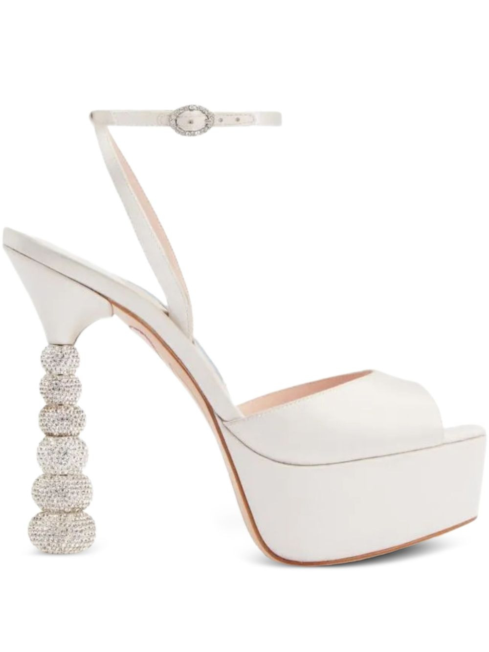 140mm Natalia crystal-heel sandals Highlights - Ivory - Ankle strap - Buckle fastening - Open toe - Platform sole - Crystal embellishment Imported Composition Outer: Fabric 100% Sole: Leather 100% Lining: Leather 100% SIZE & FIT Measurement HEEL 5.51 in(14 cm)