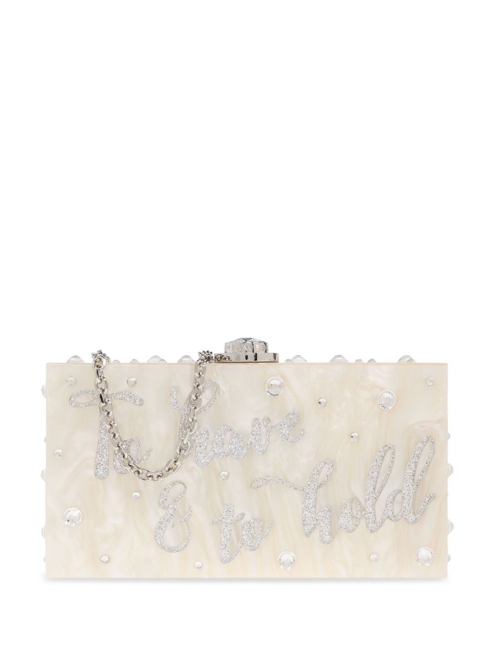 Cleo clutch bag Highlights - White - Clasp fastening - Crystal embellishment - Pearl detailing - Single top handle Imported Composition Outer: Acrylic 100% SIZE & FIT Measurement DEPTH 1.77 in(4.5 cm) HEIGHT 4.33 in(11 cm) WIDTH 8.07 in(20.5 cm)